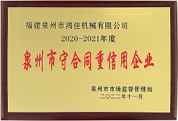 喜訊!鴻佳機械同時榮獲泉州市、南安市2020-2021年度“守合同重信用企業”榮譽稱號